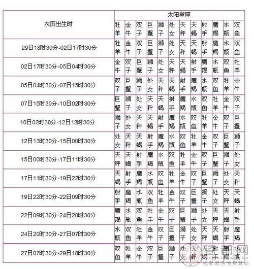下面是星座阴历转阳历查询网提供的十二星座生肖属性对照表,一起来看看吧。