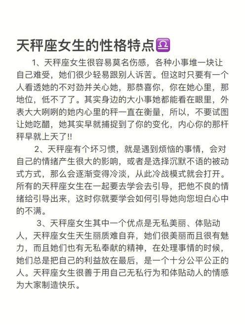 天秤座女生性格配对星座:追求和谐浪漫天秤座女孩天生优雅迷人。他们对和谐和平衡有着强烈的渴望。在爱情中,他们追求浪漫和美丽,希望找到一个能理解和容忍自己的人。以下星座是天秤座女孩的理想配对: