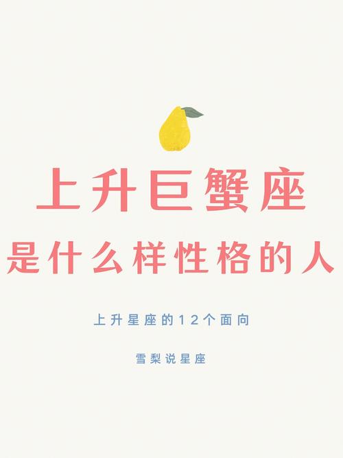 巨蟹座上升星座代表了个人在外界眼中的第一印象和个性表达。根据巨蟹座上升星座,个体可能表现出温和、敏感和强烈的亲和力。巨蟹座上升星座的具体含义不仅限于此,还涉及到更深层次的个性特征和行为。