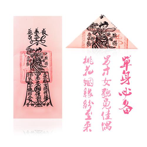 在道教文化里,认为视死如生,如果死人生前没有结婚就需要为他结阴婚,在鲁迅的小说有很多描写。为死人结阴婚时所用的灵符叫做“桃花符”。符咒上面会写奉请和合二仙,九天玄女娘娘作主招桃花,改善异性缘,招人缘,增进与异性间感情。用法:黄纸书符一道配带在死者身上,或放在死者枕头里,如果是死者托梦睡觉时梦到可以请“桃花符”,在梦到后七七四十九日,后随黄裱纸于深夜焚化十字路口。可为阴婚死者招十方之情缘。