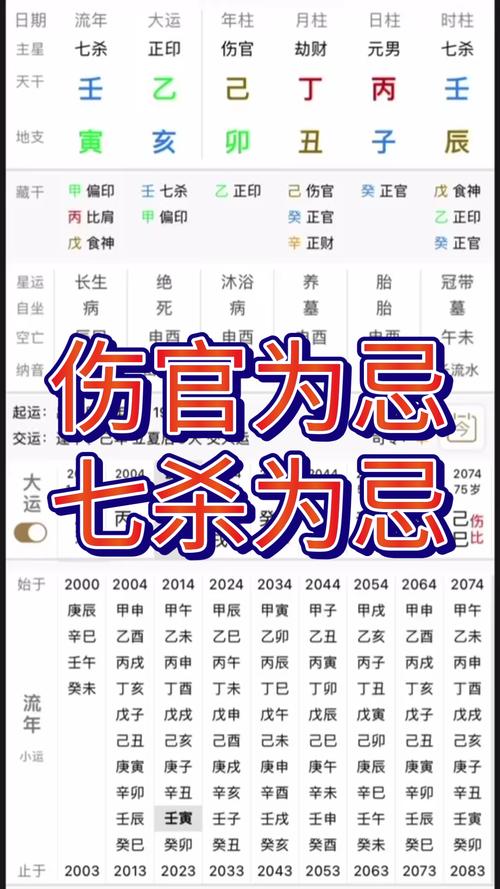 1、八字中七杀逢伤官大运流年时,男命易有桃色之灾,男女婚姻都不好,严重者会有分离之苦,男命官运受损,女的恐有离婚之忧;