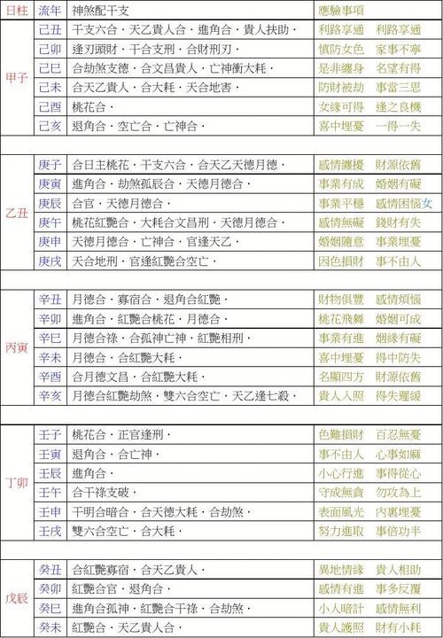 八字行运神煞表八字年运神煞。