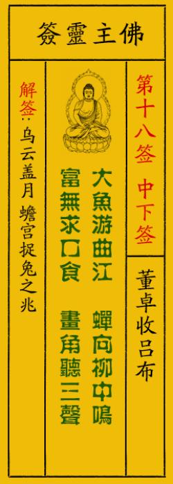 十八签:星辰逢恶曜,运势不可前,清心修善果,自有喜悦