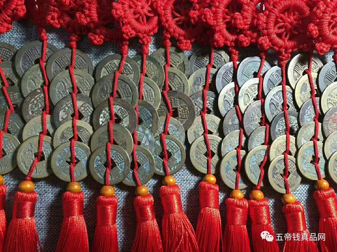 五帝钱是传统文化中的一种道具,又称五音钱和乾隆钱。它是敬神、拜佛、做法的重要工具之一。五帝钱有两种。一种是五枚铜币,依次镶嵌成一个整体。另一种是五枚不同款式的铜币,用绳子串联在一起。用五帝钱算命已经成为一种流行的预测方式。