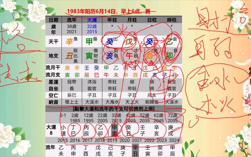 农历:八四年八月二十二日上午六点半。八字:甲子;桂酉,甲寅,丁卯。