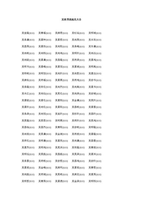 推荐吴姓宝宝名字及其含义1. 吴俊良:代表帅气、可爱的形象,含义丰富又雅俗共赏。
