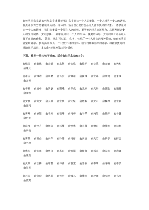 俞字男宝宝取名