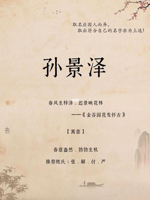 名字的含义也会与孩子的个性特征有关。研究表明,名称对个体性格的发展有一定的影响。例如,一个名字具有积极意义的孩子可能更容易有乐观开朗的性格;一个名字意味着聪明聪明的孩子可能更容易表现出聪明的特点。从名字的意思来看,景泽宝宝的名字是个不错的选择,既有美好的寓意,又能激励孩子积极发展。