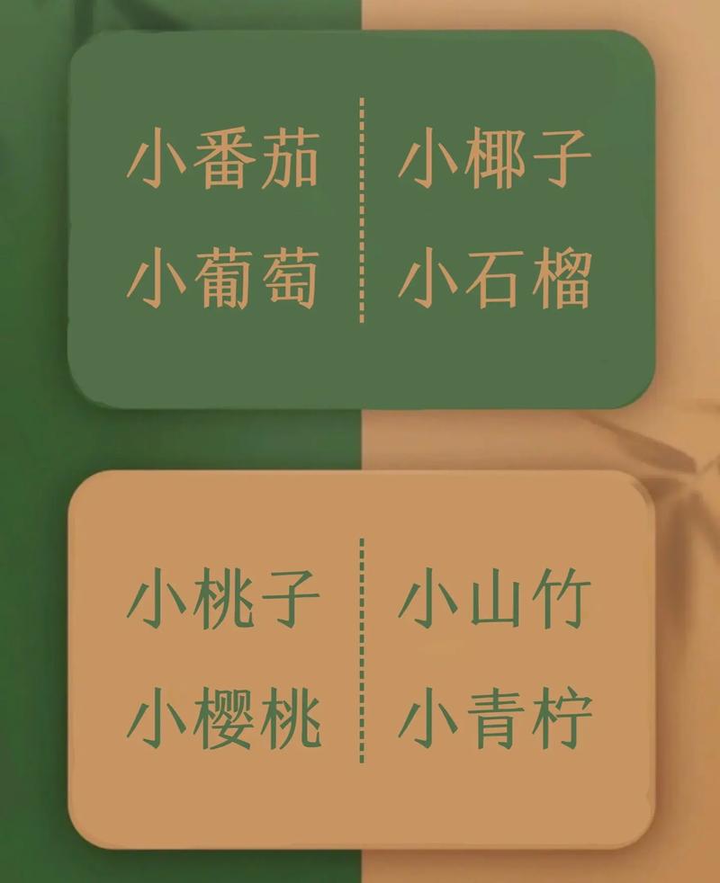毛豆、多多、嘟嘟、毛毛、天天、叮叮、蓉蓉、糖糖