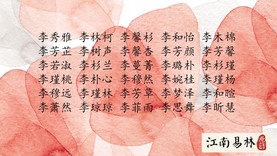 四个名字通常有两个名字 两个字。四字名看起来很华丽。如果你不太注意,你可能会有点固执,但如果这个词很好,这也是一个很好的选择。以下是一些适合姓李的男孩的四字名: