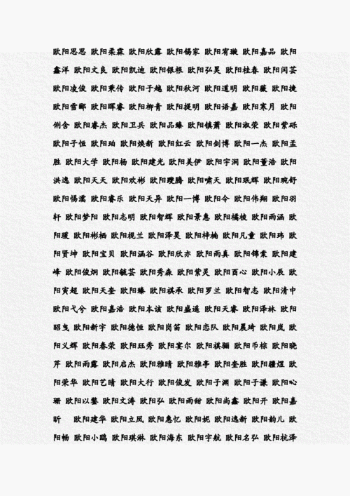 欧姓是今天比较常见的姓,从思姓出来,属于欧阳简姓。在生活中,我们周围姓欧的人并不多,所以它会看起来非常新颖和独特。在命名时,只要稍加小心,你就可以使这个名字看起来特别有趣,或者有一种独特的味道。